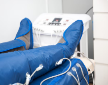 Pressotherapy is modern lymphatic drainage massage using compressed air to enhance blood circulation, flush toxins, and decrease water retention. It requires the patient to wear specialized inflatable boots or sleeves and occasionally a full-body suit that inflates gently in waves that mimic deep tissue massage.